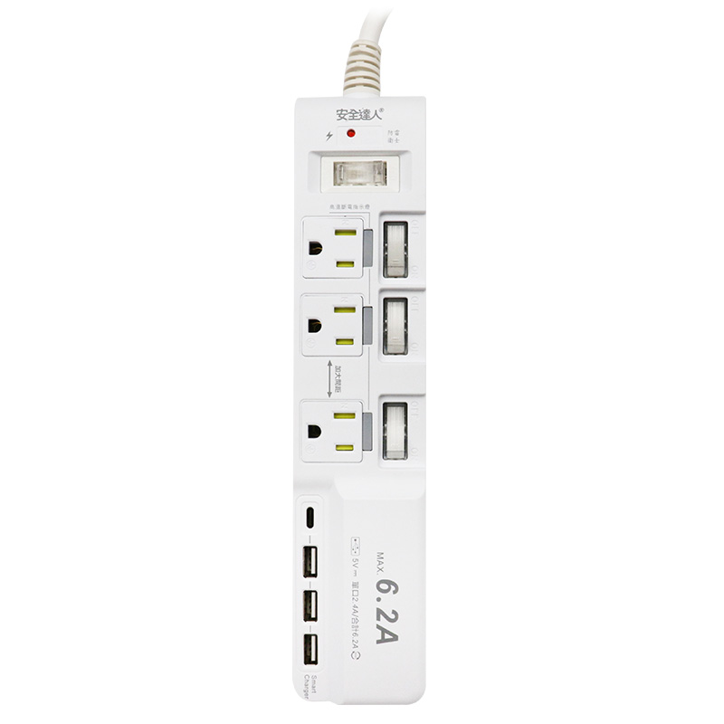 ◆產品規格:3口,3孔插座,4 Ports USB(Type-C*1+Type-A*3)