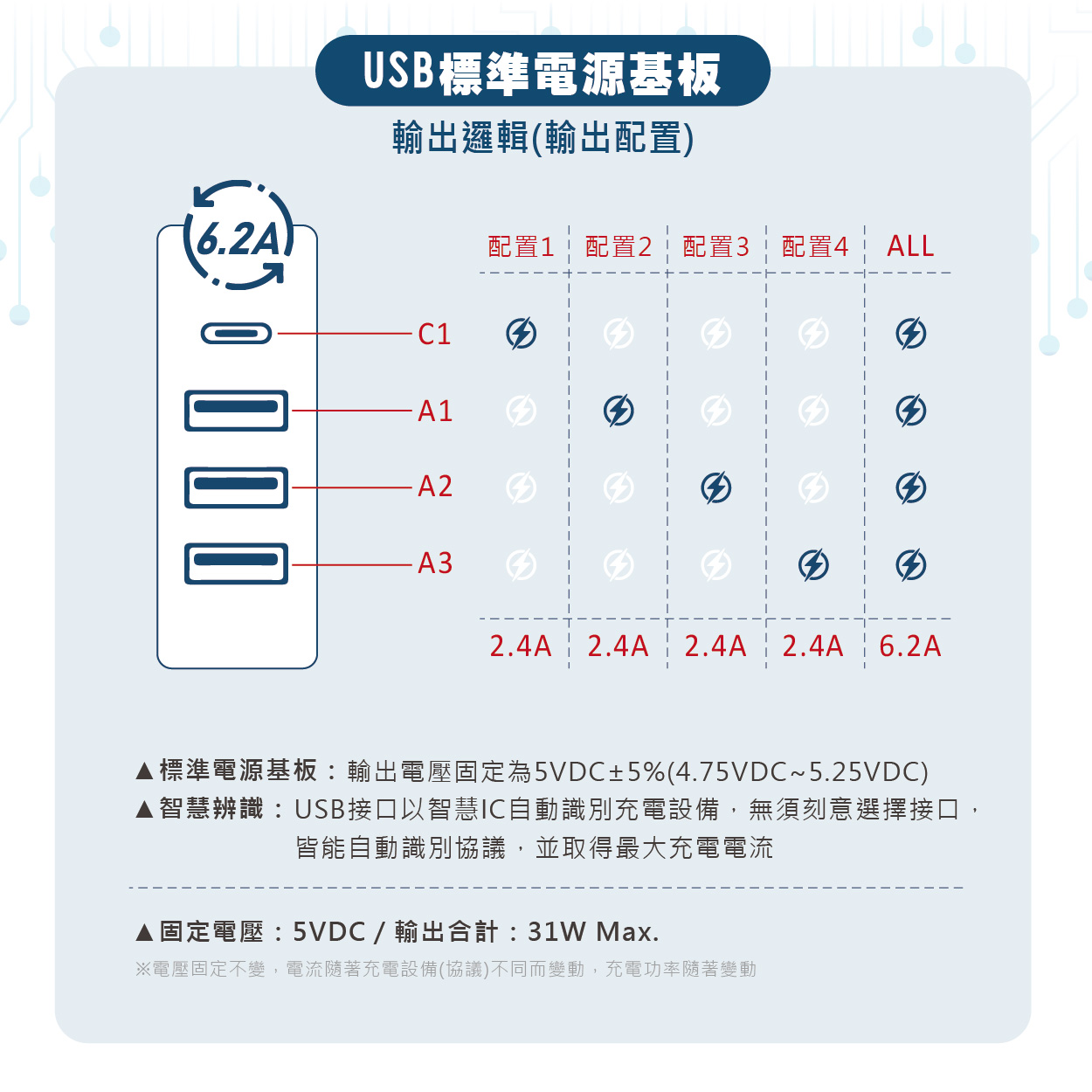 (四孔)的輸出電流合計為6.2A