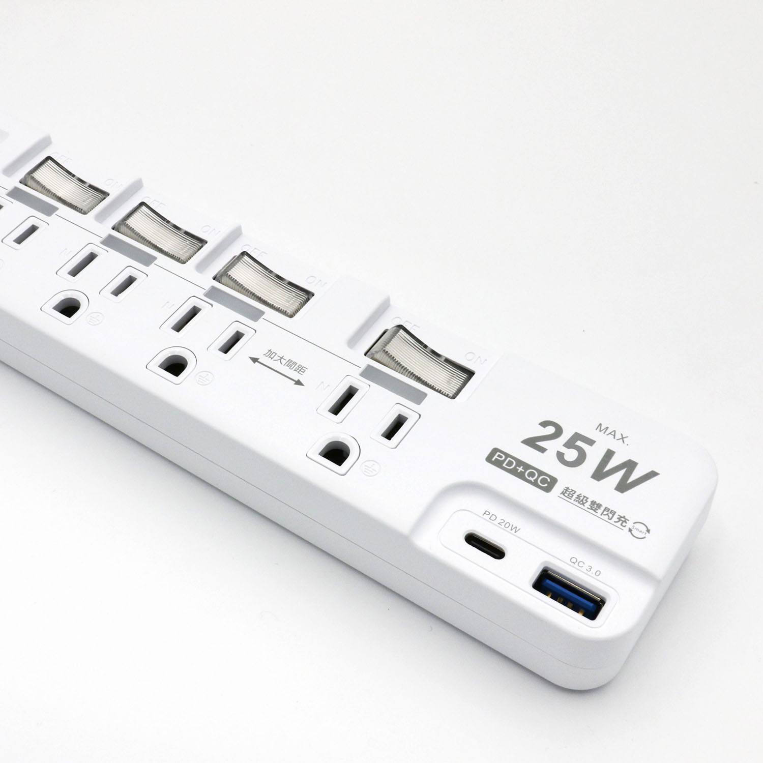 ◆產品規格:4口,3孔,PD20W(Type-C)+QC3.0(Type-A)