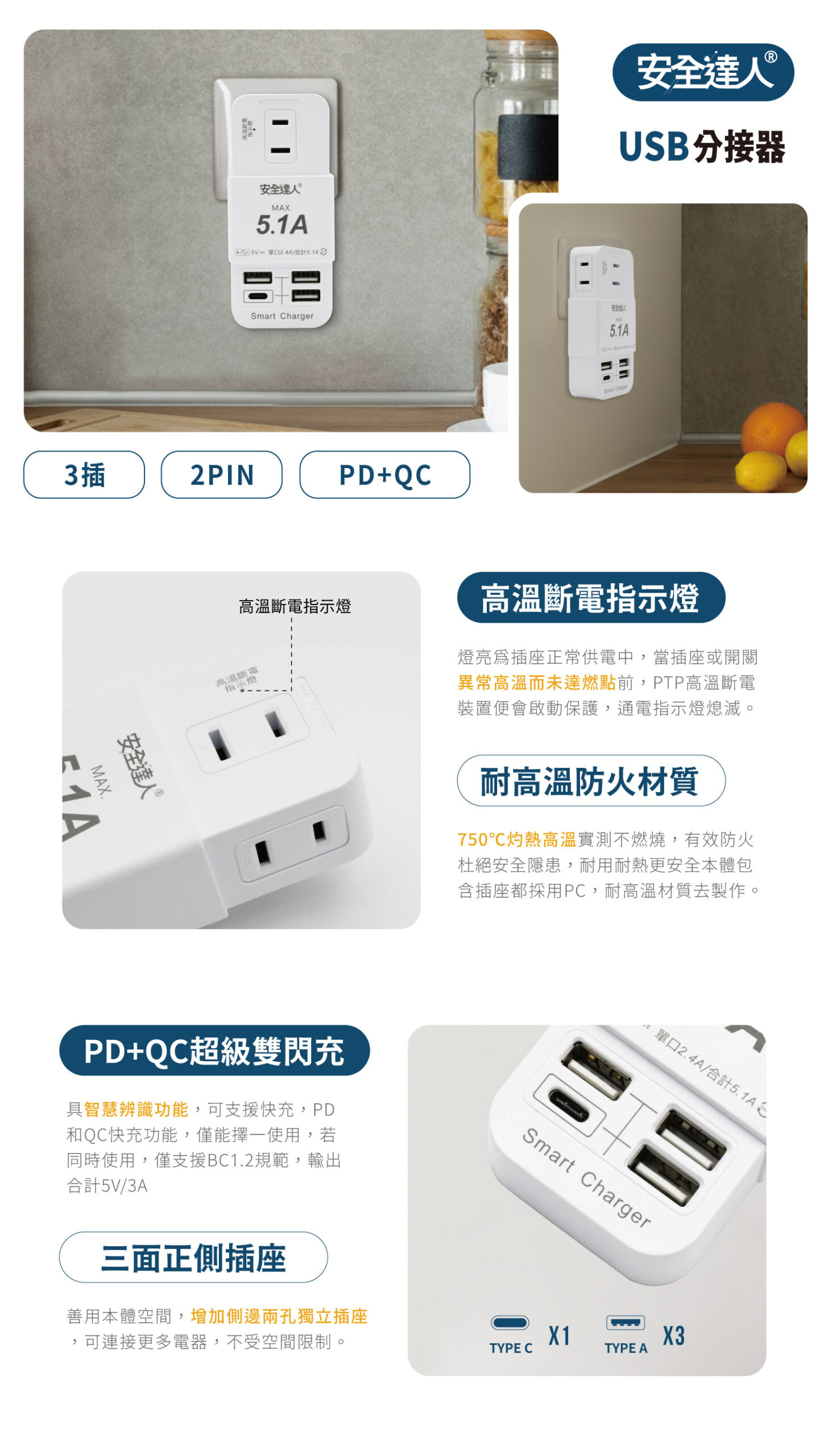 分類: USB分接器(壁插), 安全達人系列