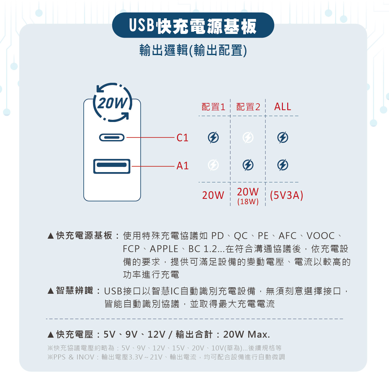 🔸具有智慧辨識功能,若滿足充電裝置之握手協定,則可支援快速充電功能