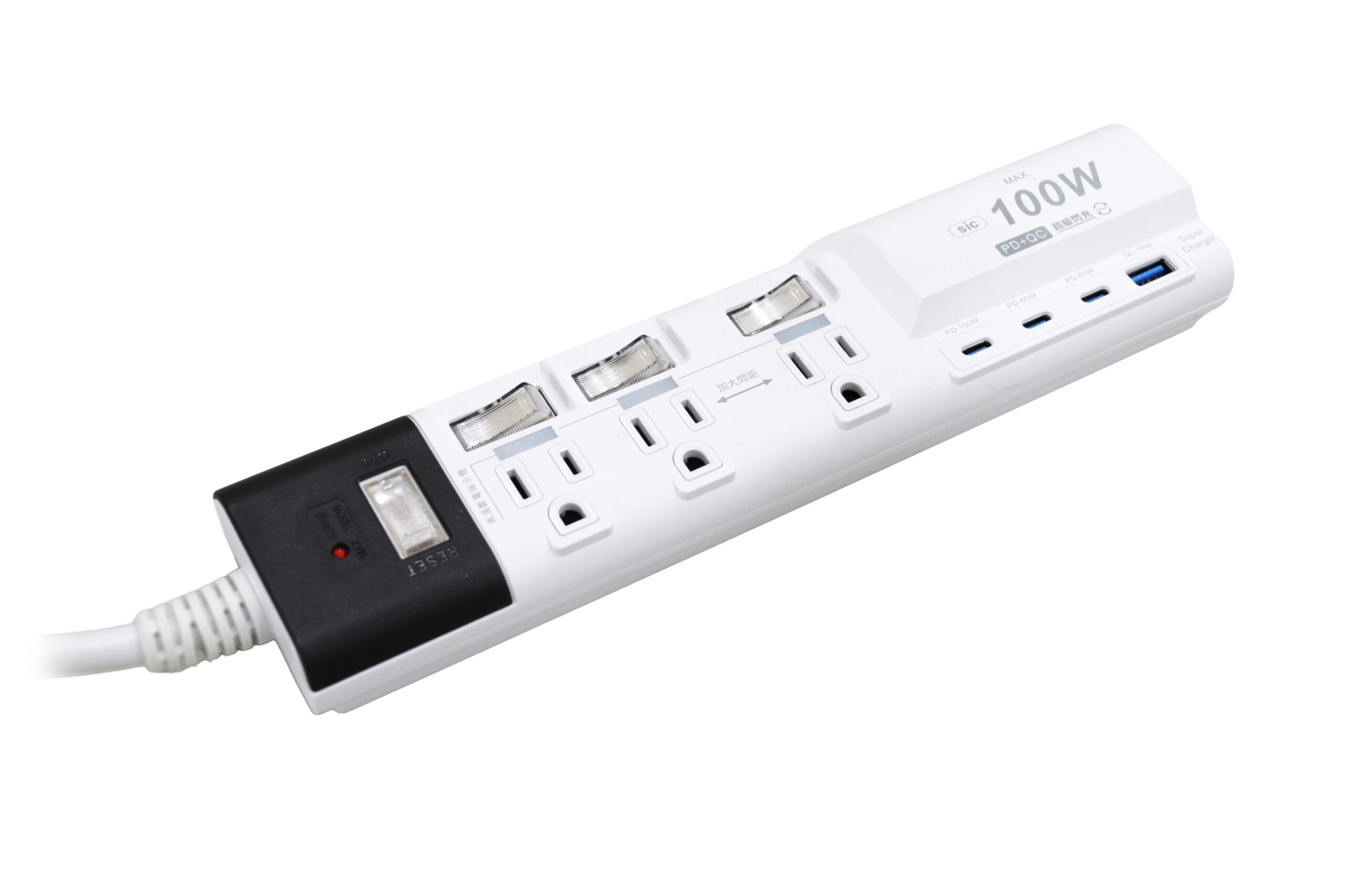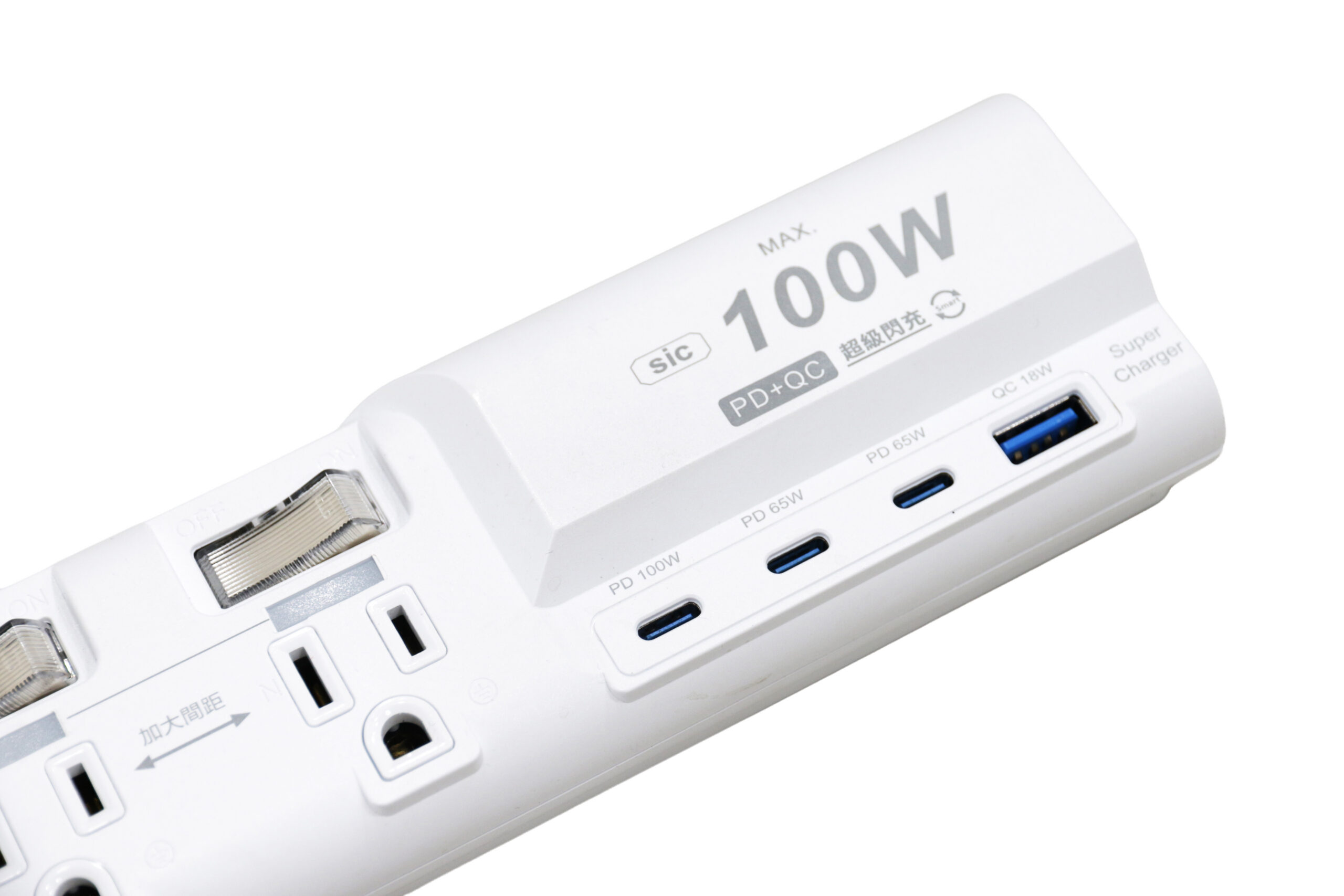 🔸產品規格:3口,3孔,PD100W(Type-C)+QC3.0(Type-A)