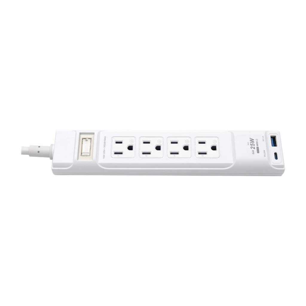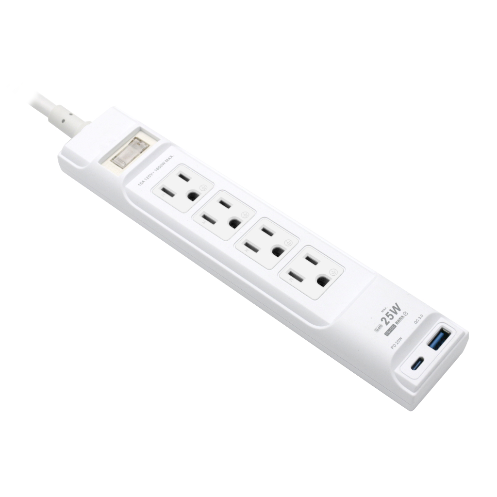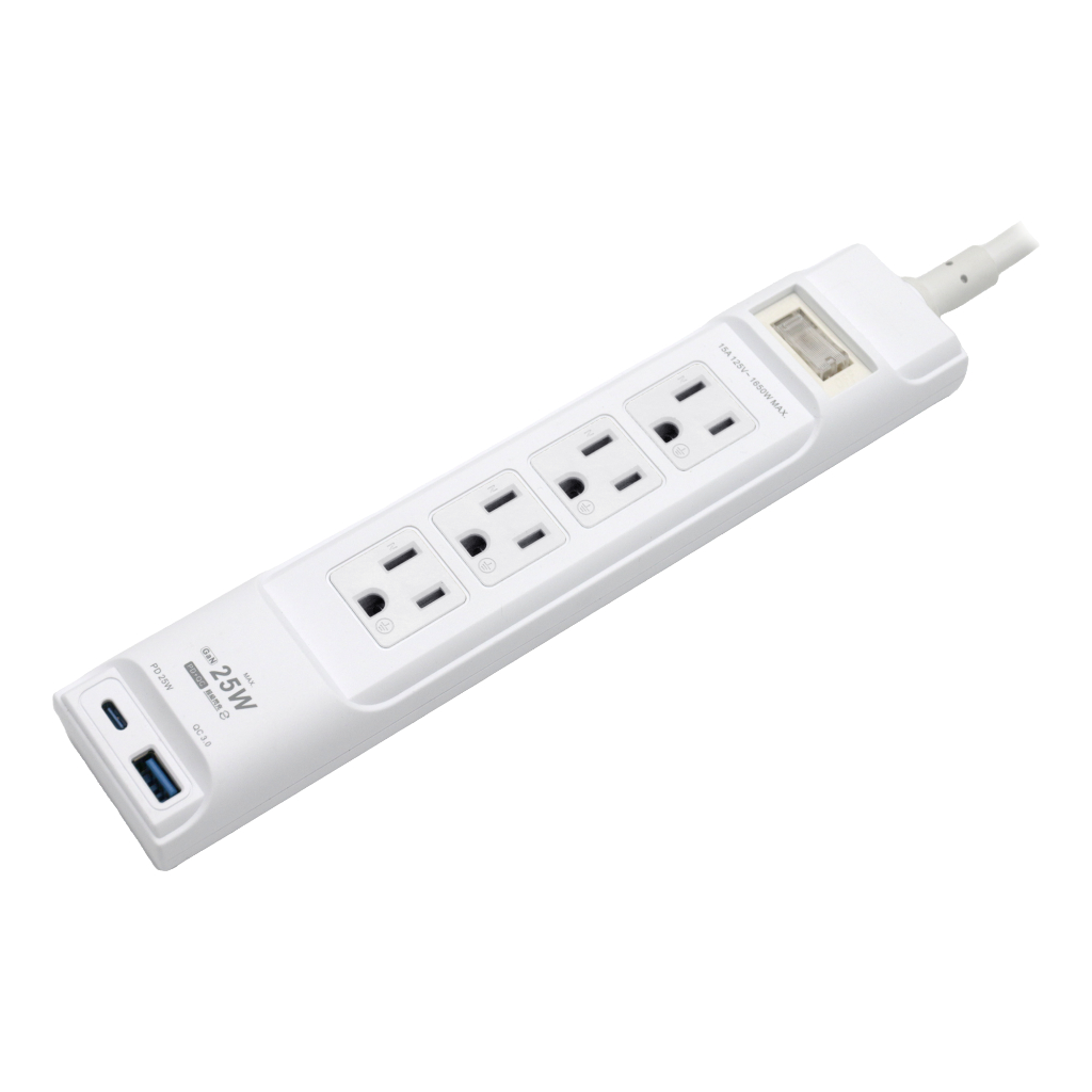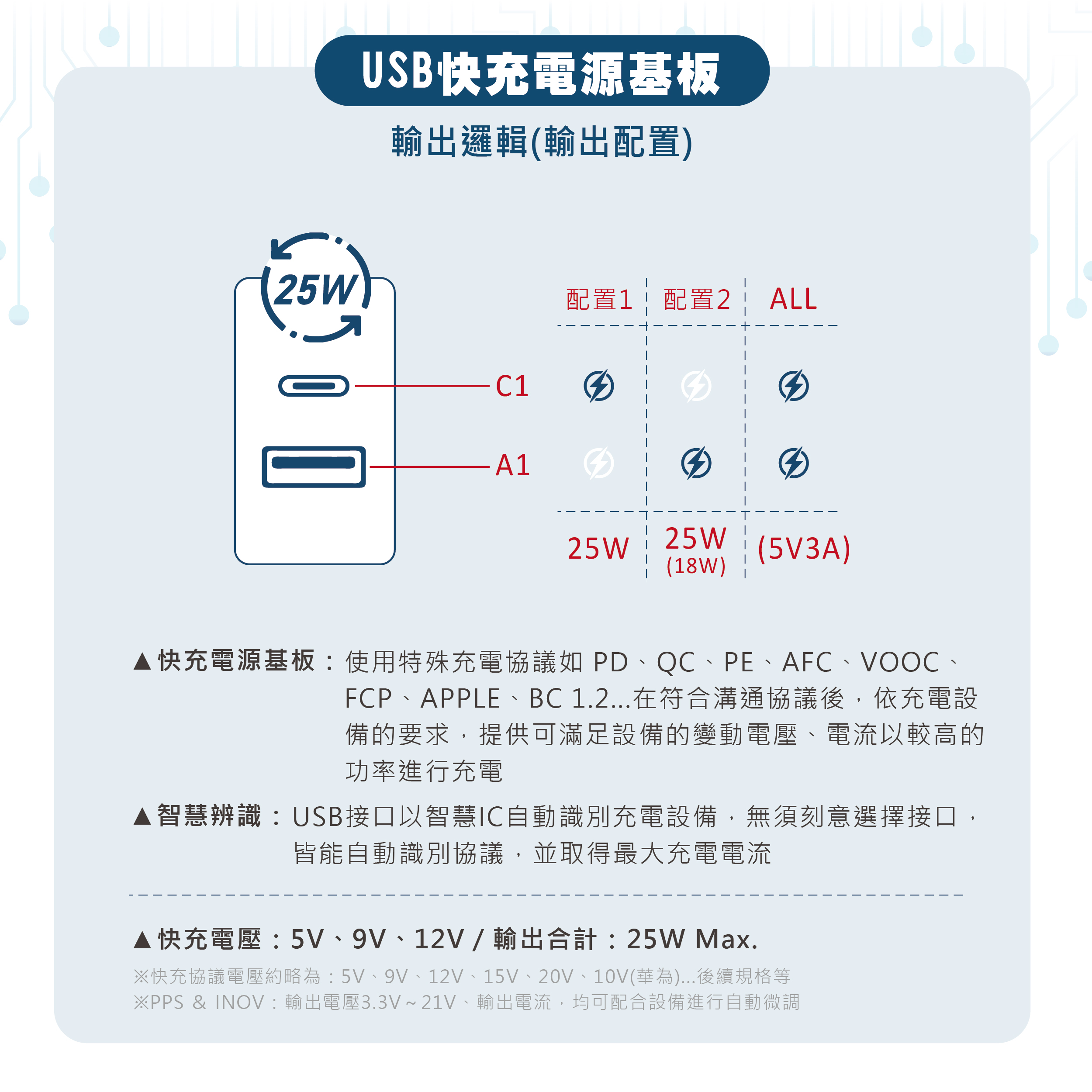 產品規格:4口,3孔,PD25W(Type-C*1)+QC3.0(Type-A*1)