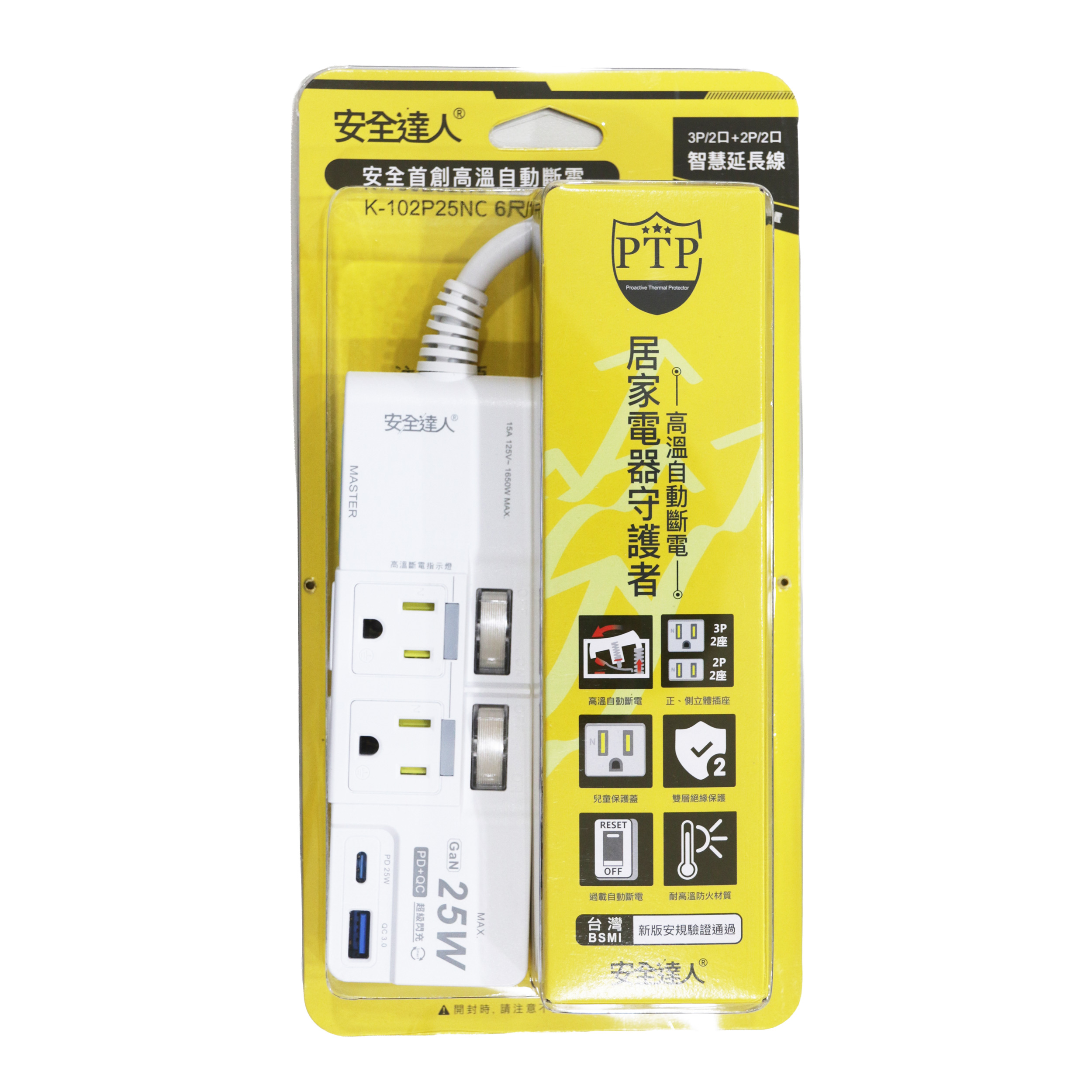 ◆產品規格:4口,2+3孔,PD25W(Type-C)+QC3.0(Type-A)